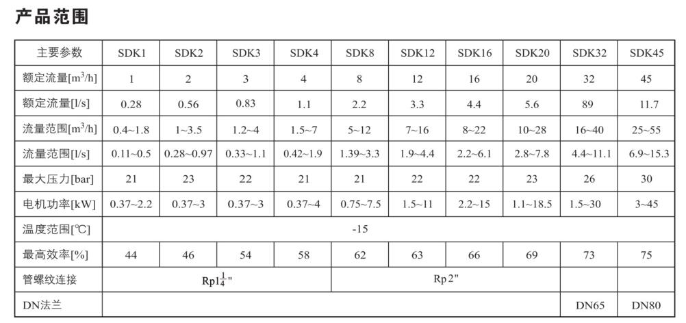 用于輸送機床冷卻液、潤滑液、冷 凝水輸送、工業清洗設備和其他適合侵入式泵使用的場合。SDK3適用于輕度腐蝕性液體,SDKT3適用于無腐蝕性液體。